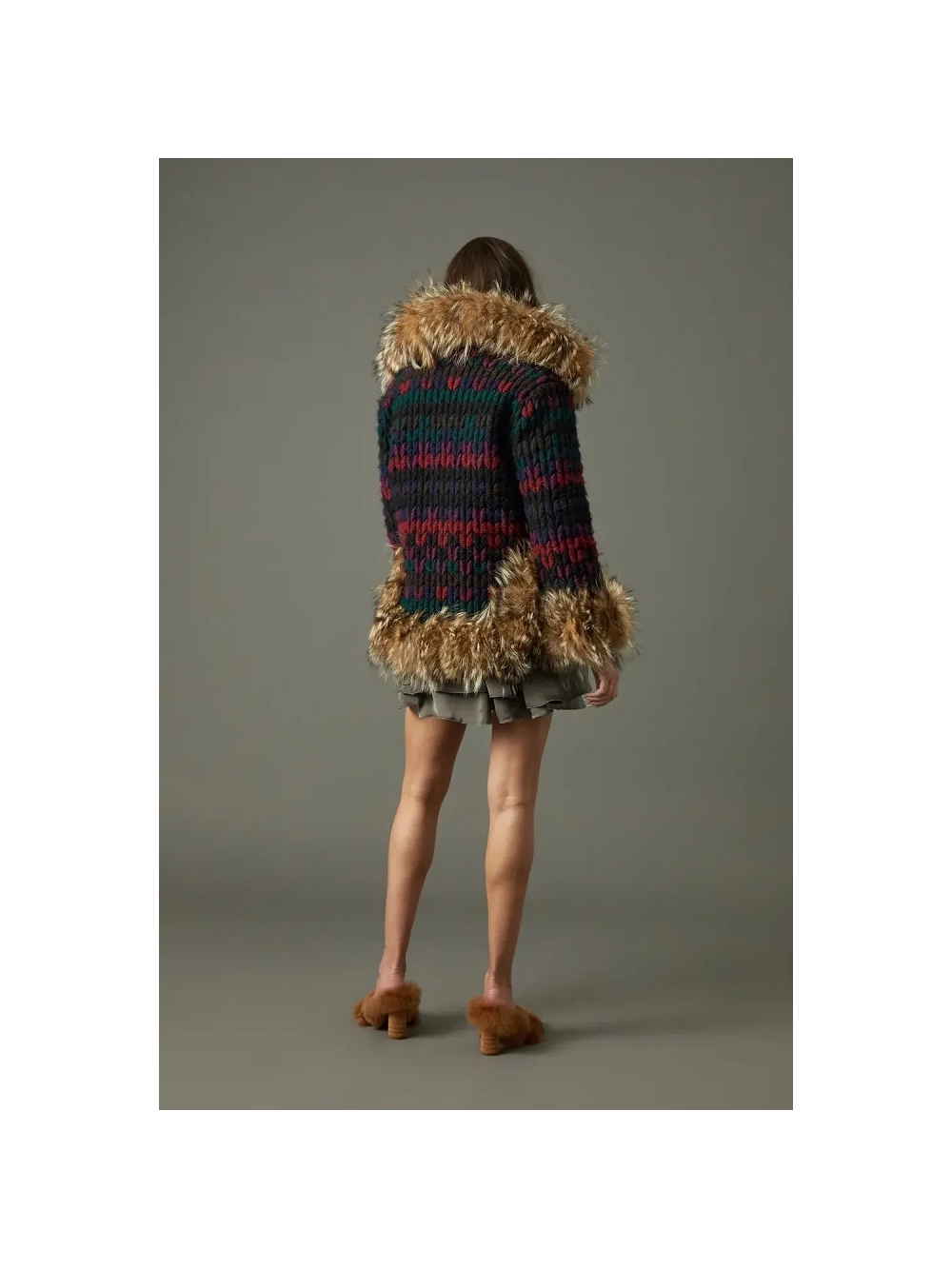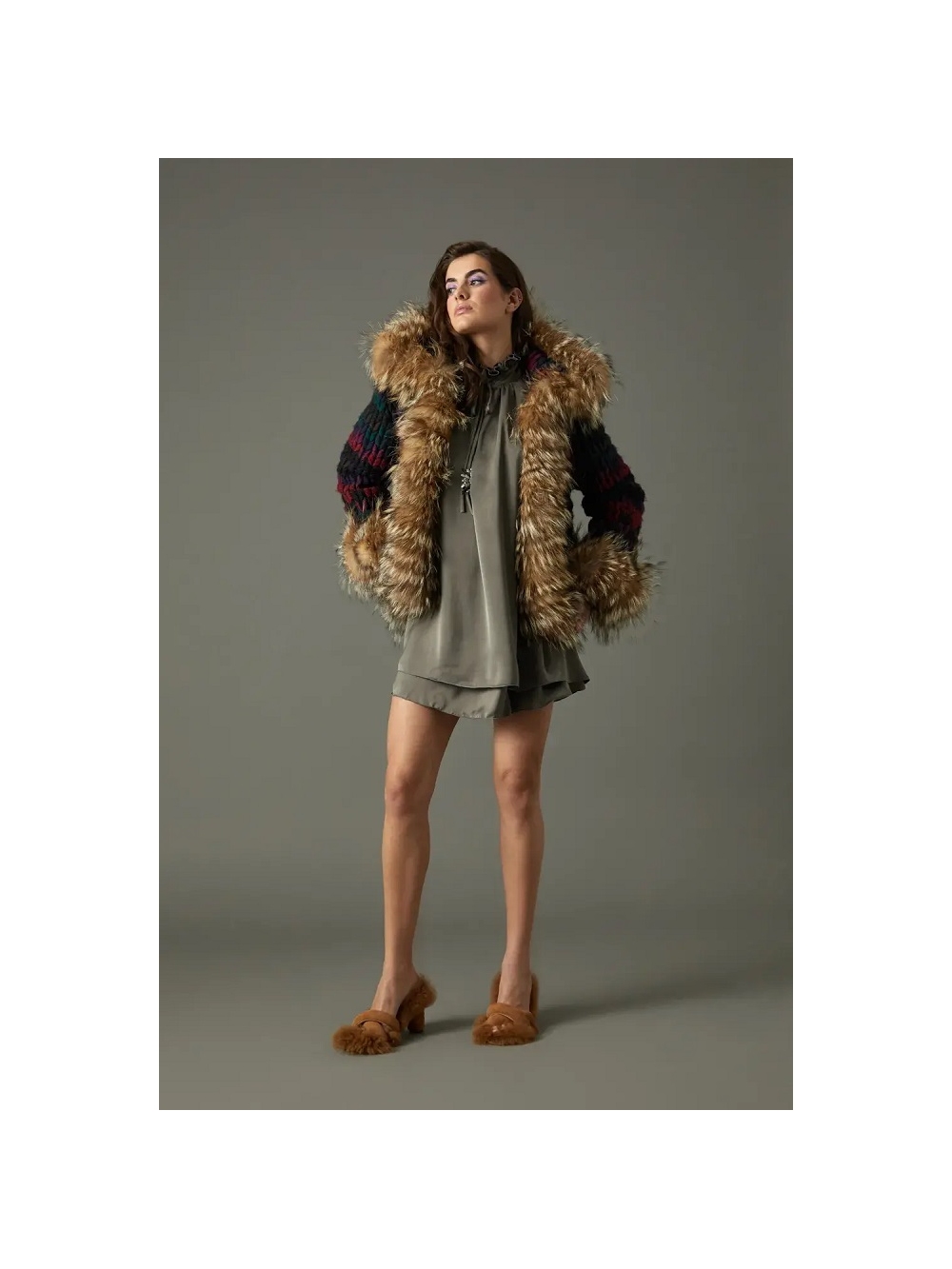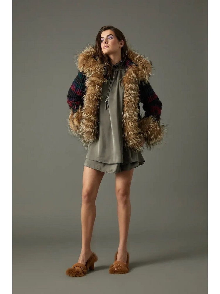 Abrigo corto evasé lanas de colores ribeteado en coyote COMPOSICIÓN: