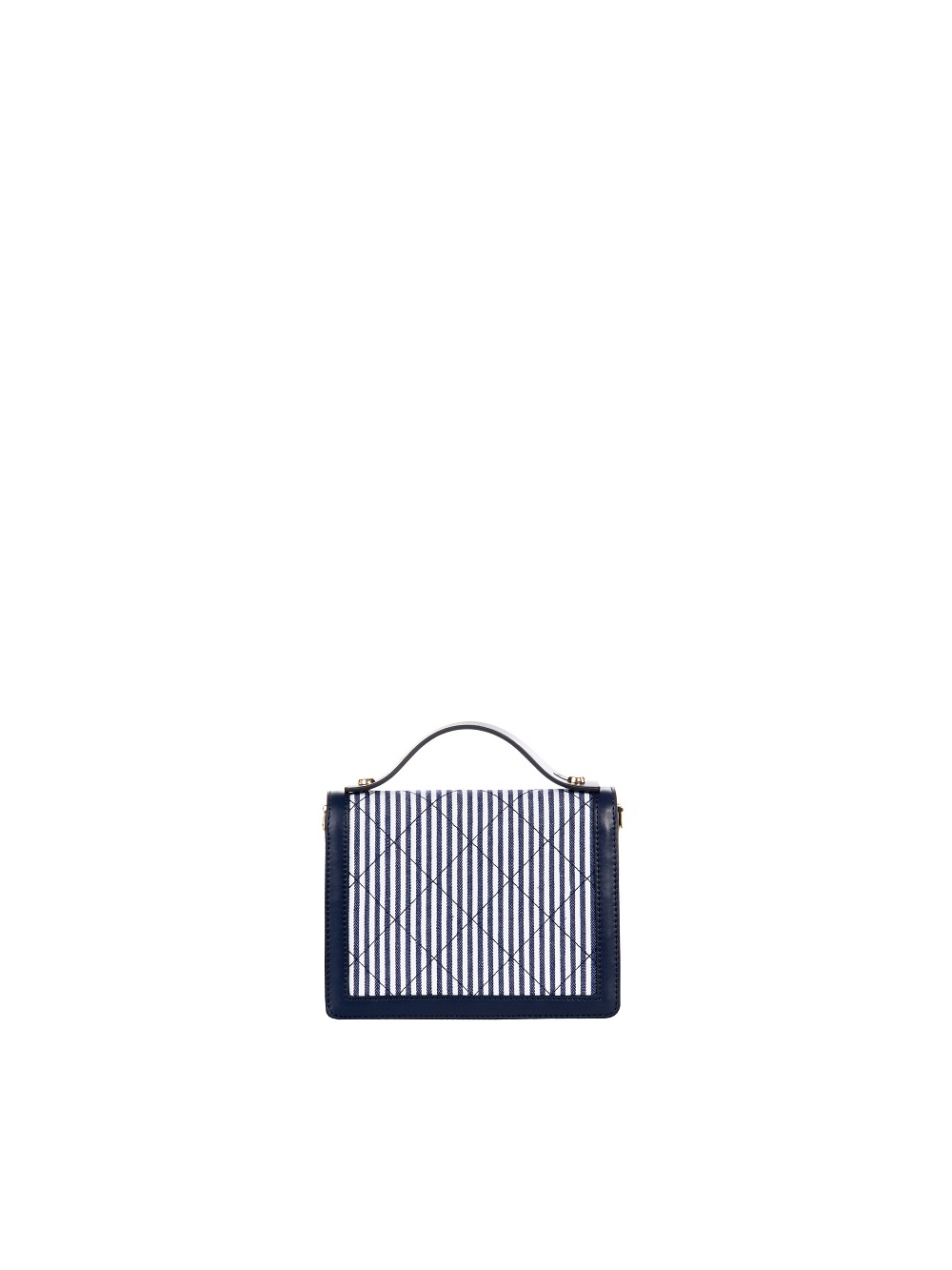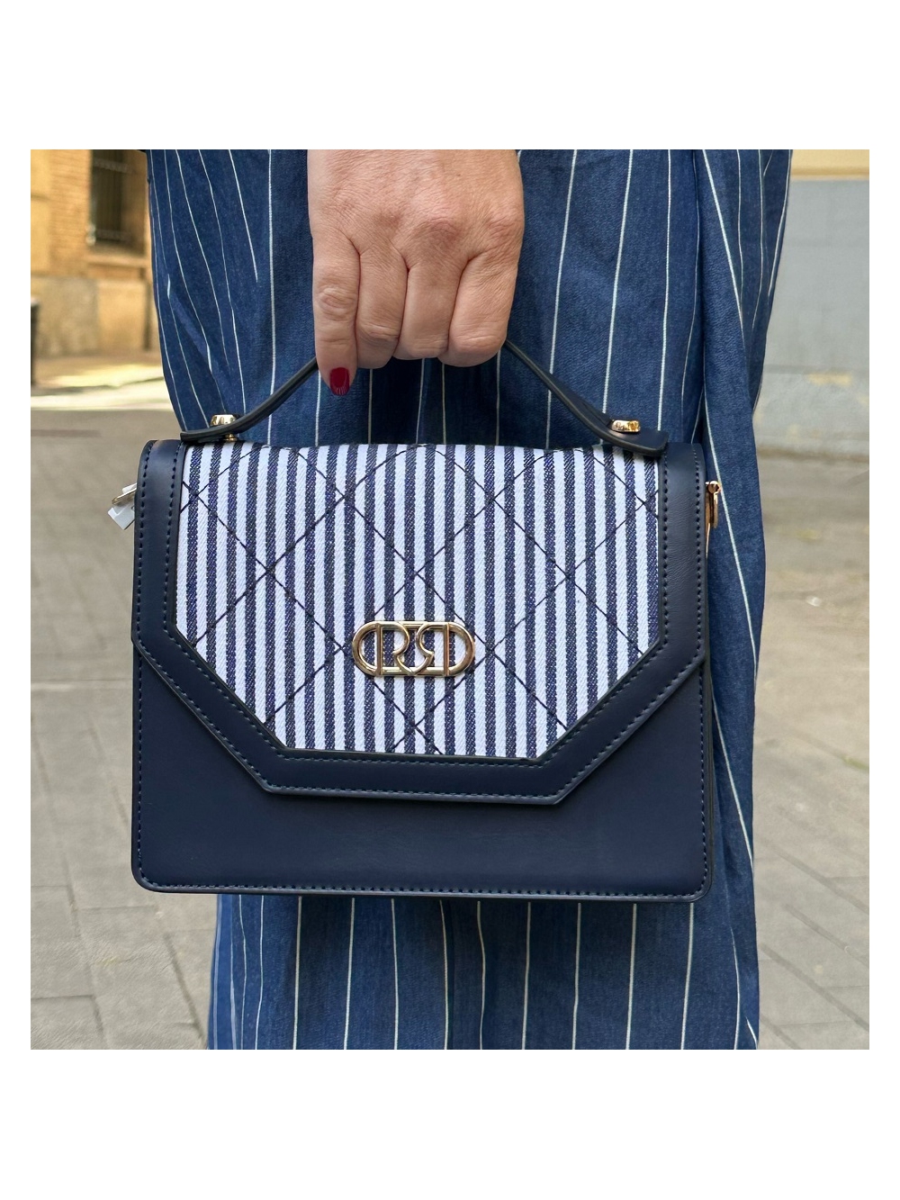 Este bolso de rayas azules y blancas es un accesorio sofisticado y versátil, perfecto para completar con estilo cualquier outfit de diario. Su diseño compacto y estructurado lo hace ideal para cada ocasión, desde momentos de ocio hasta contextos del día a día. Su confección en piel sintética y tejido jacquard presenta una silueta rígida, que incluye asa superior y correa de quita y pon, un detalle que permite doble uso. El cierre de cremallera aporta seguridad, mientras que el estampado de rayas le confiere un toque chic y contemporáneo. Medidas: 20 x 7 x 15 cm. COMPOSICIÓN: