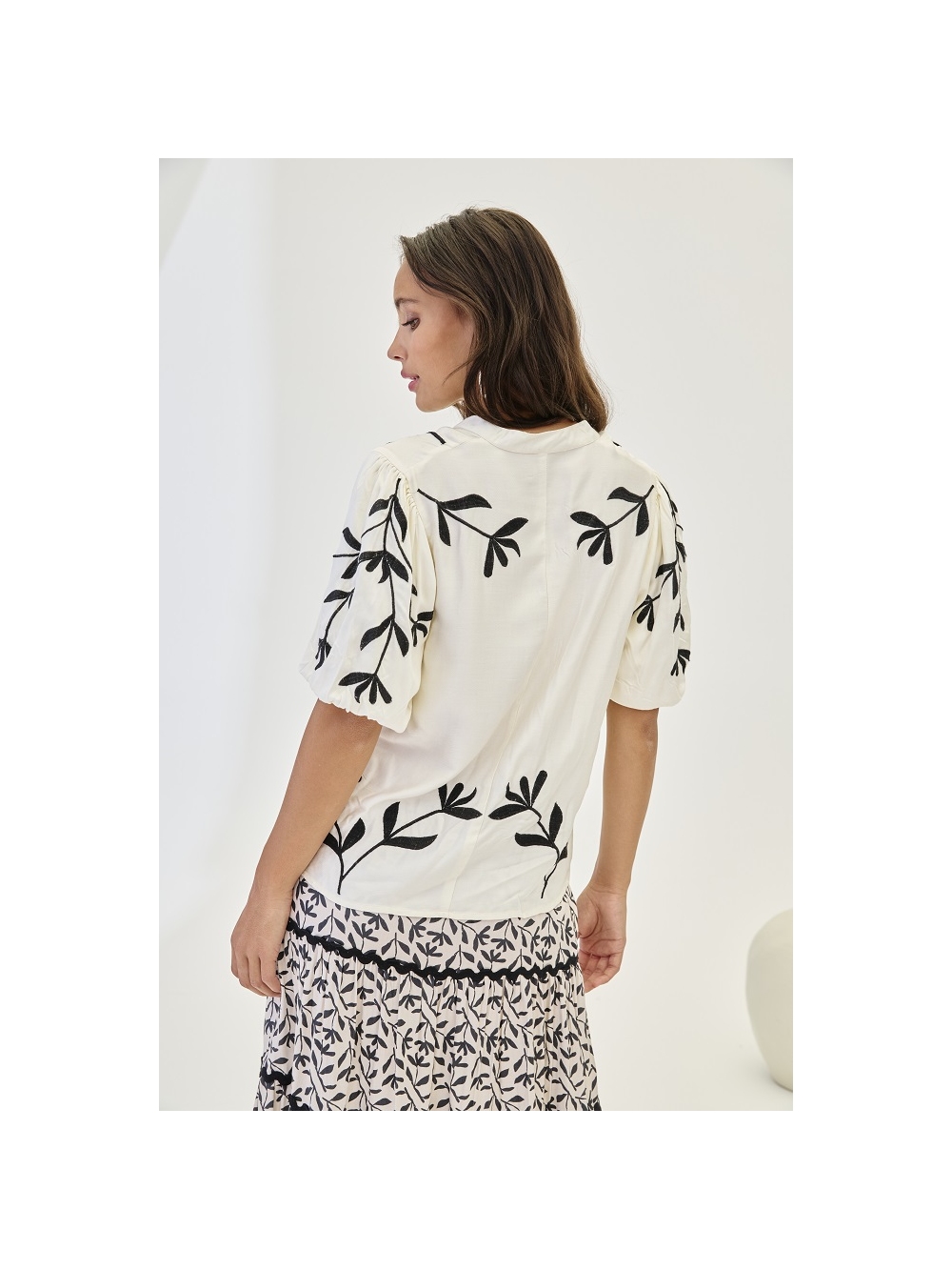 BLUSA VISCOSA MANGA MIDI BORDADO