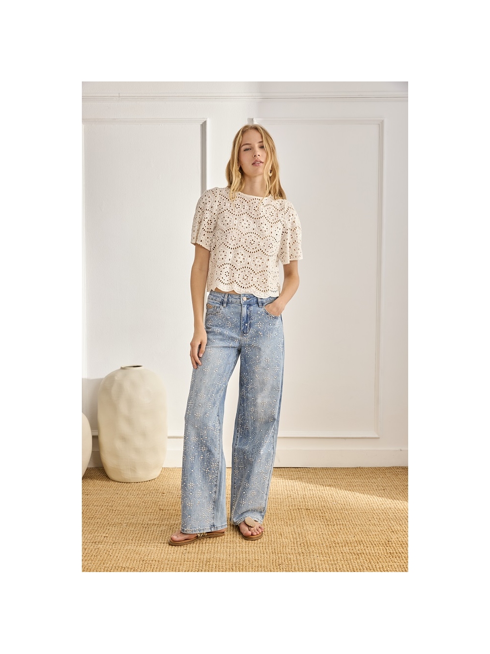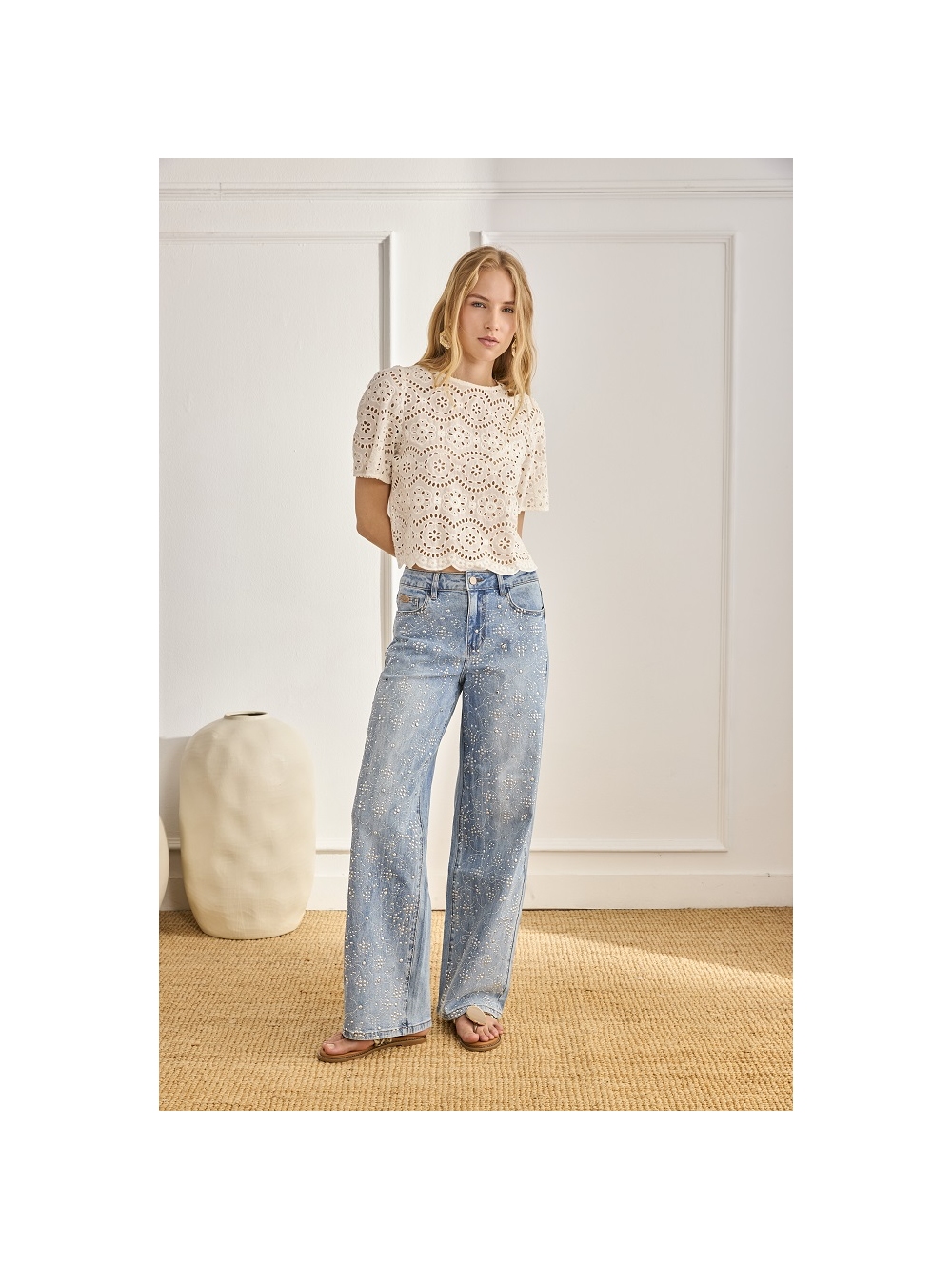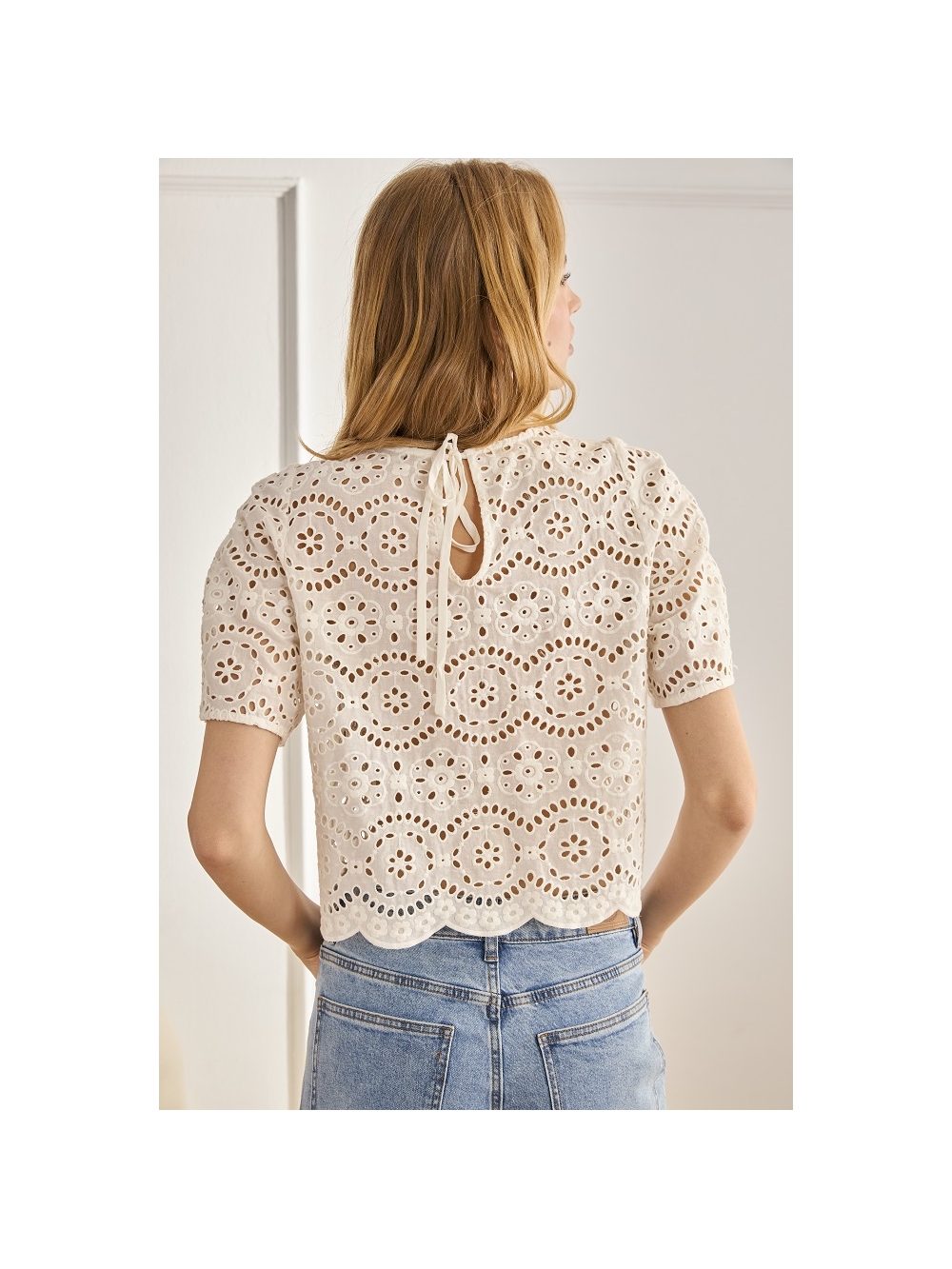 BLUSA CON CALADOS Y ESCOTE REDONDO