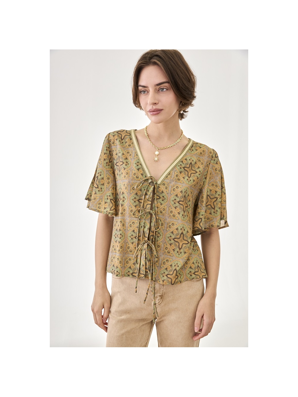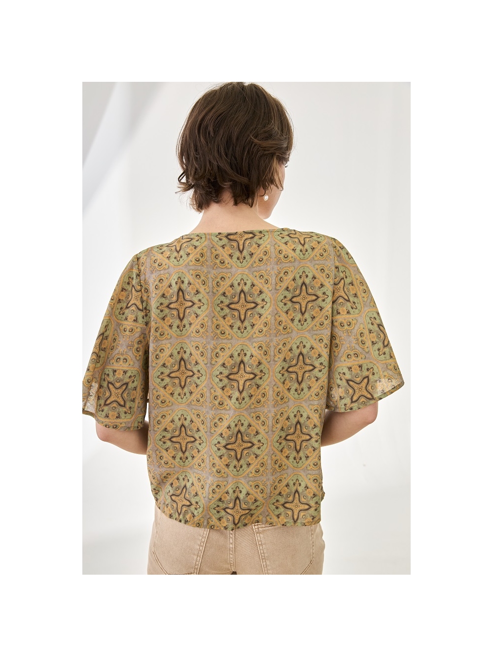 BLUSA VISCOSA EST MANGA CORTA CON BORDAD
