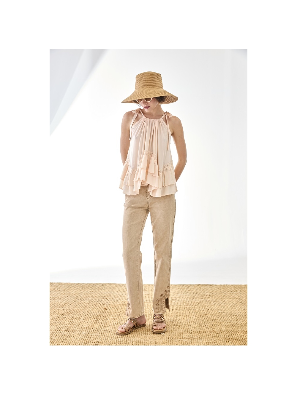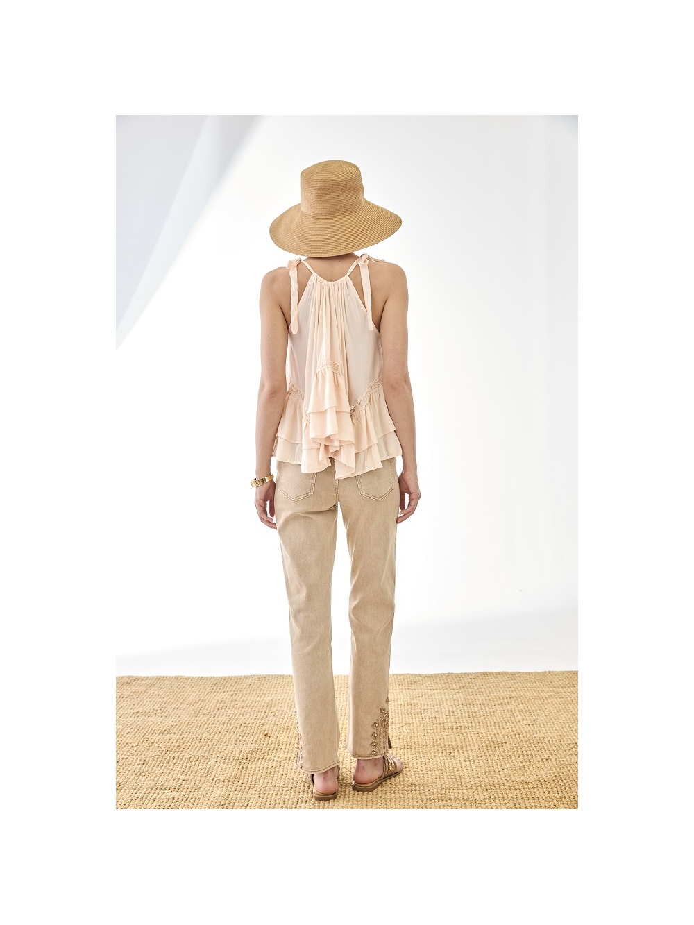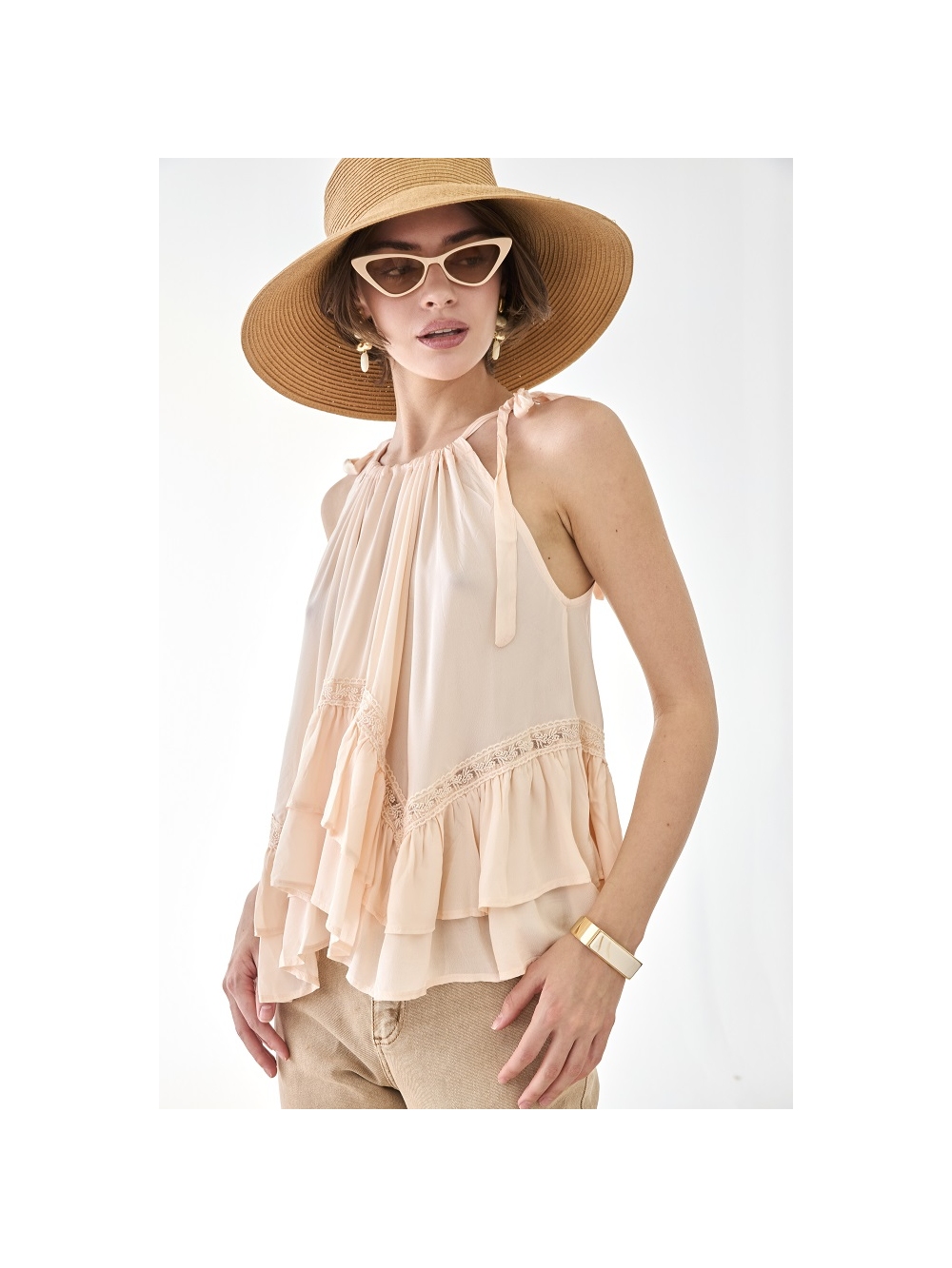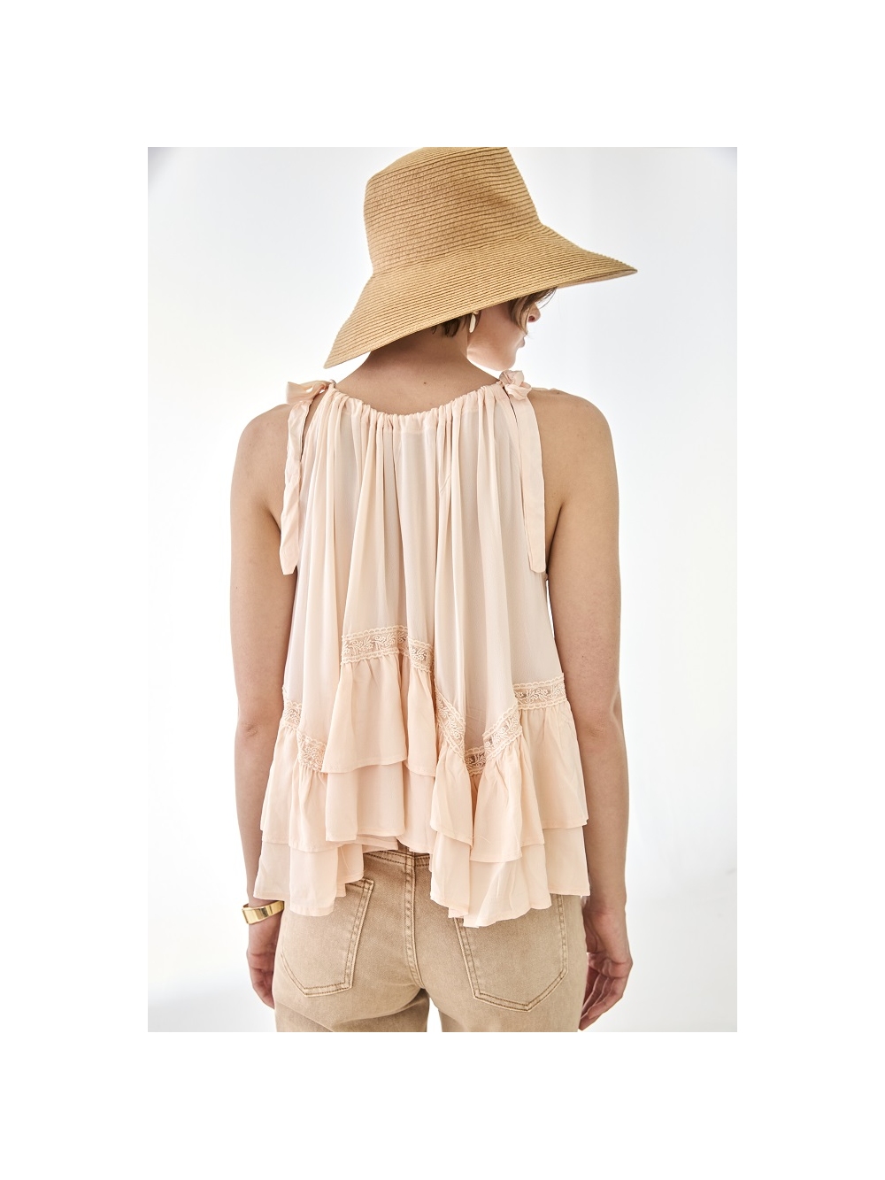 BLUSA RAYON TIRANTES VOLANTES Y BLONDA