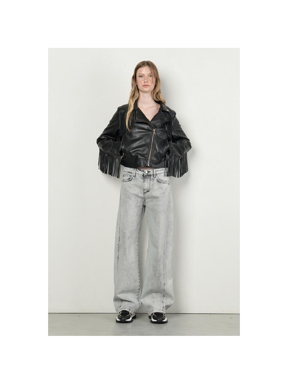 CHAQUETA ECOPIEL CON FLECOS