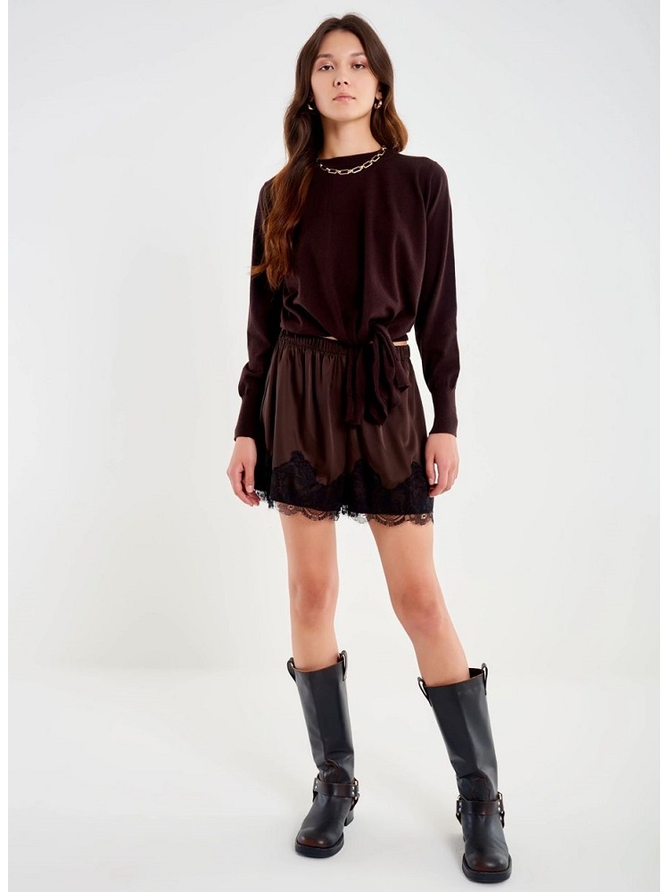 Pantalón corto de raso con encaje en la parte inferior. Cintura elástica. El modelo mide 178 cm con alas y lleva talla única COMPOSICIÓN: 95º/ₒ POLIESTER 5º/ₒ ELASTANO
