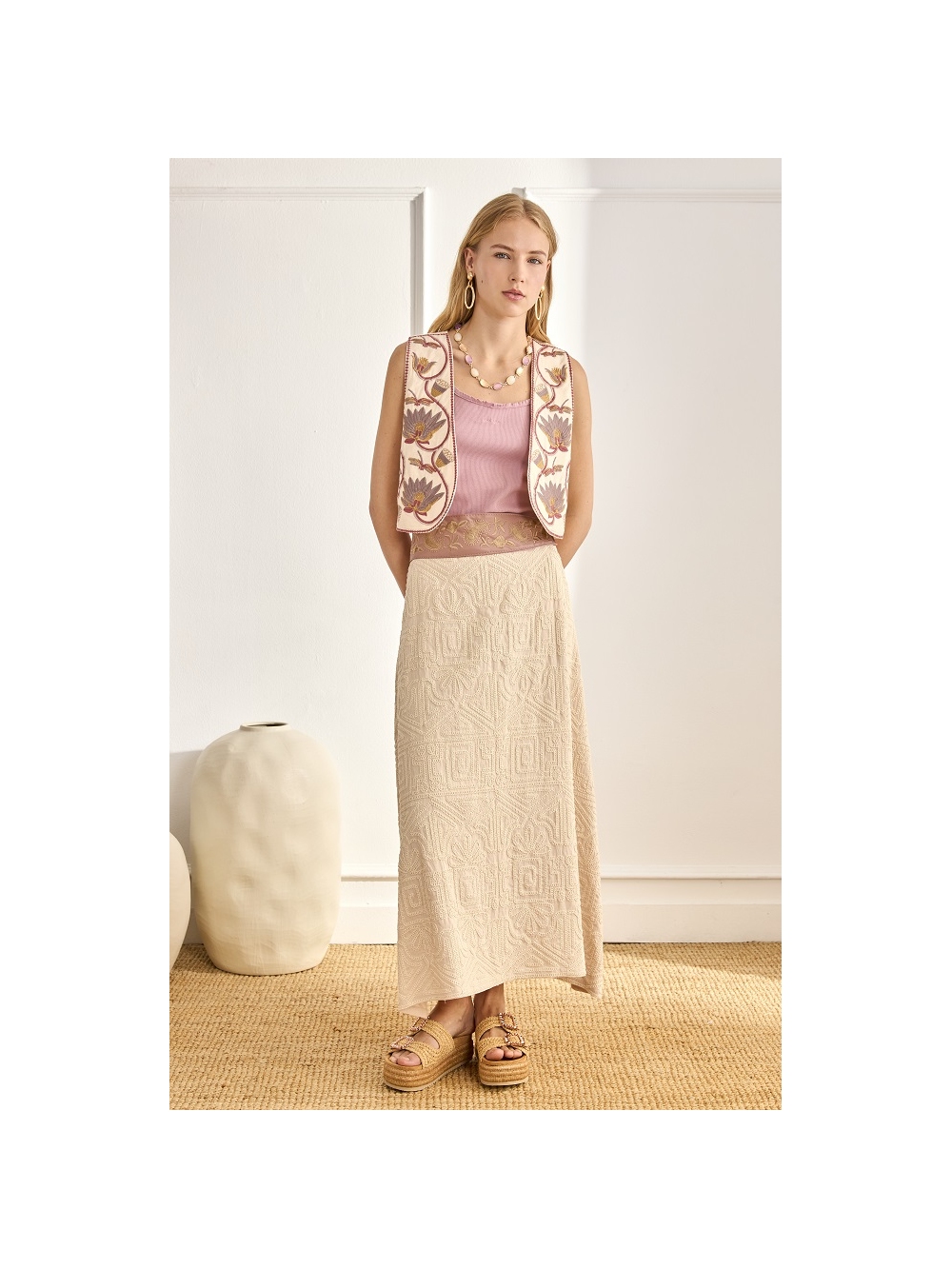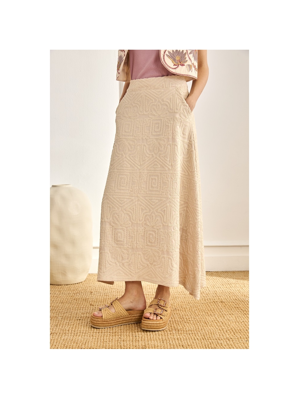 FALDA VISCOSA BORDADO RELIEVE GEOMETRICO