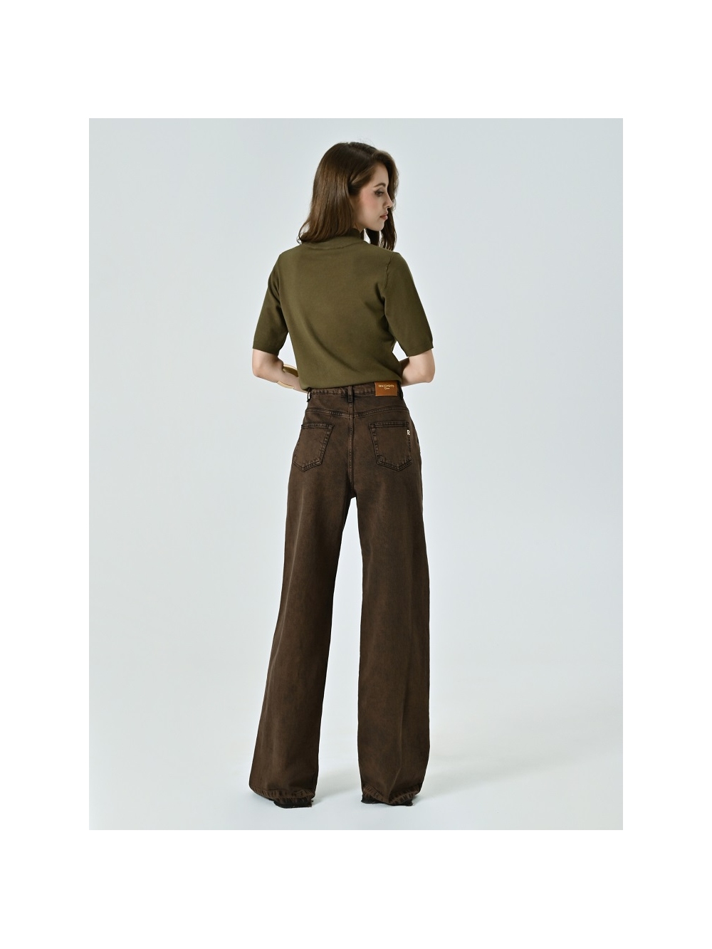 Estos vaqueros son una pieza atemporal, perfecta para construir looks de diario atrevidos y sofisticados. Su confección en tejido firme marrón presenta un corte de pernera amplia y recta, cinco bolsillos, trabillas para cinturón y un práctico cierre de botón y cremallera que garantiza un fit nítido y cómodo. Son fáciles de combinar con tops fluidos, camisas o blazers estructuradas.