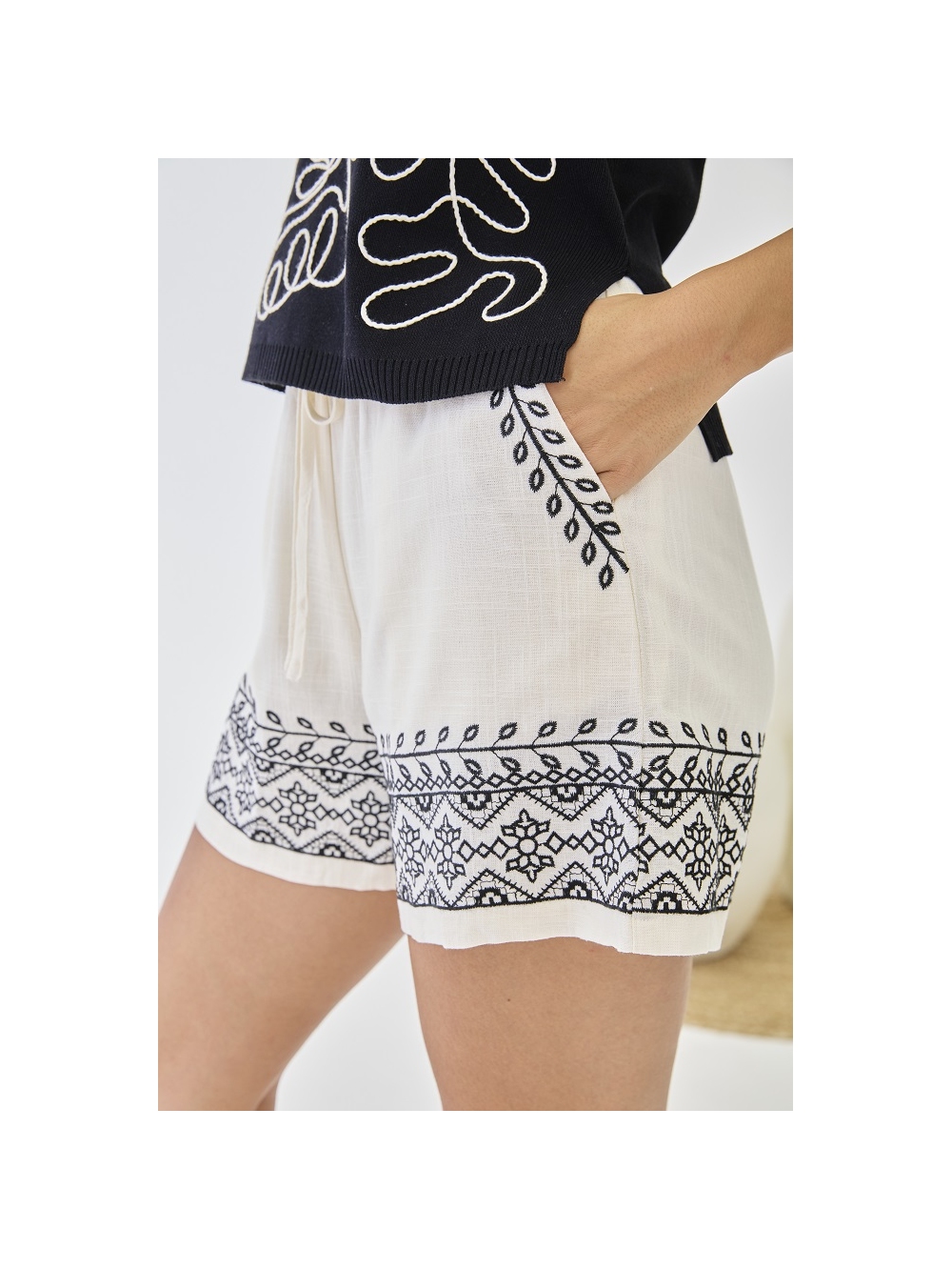 SHORT LINO BORDADO EN BAJO Y BOLSILLO