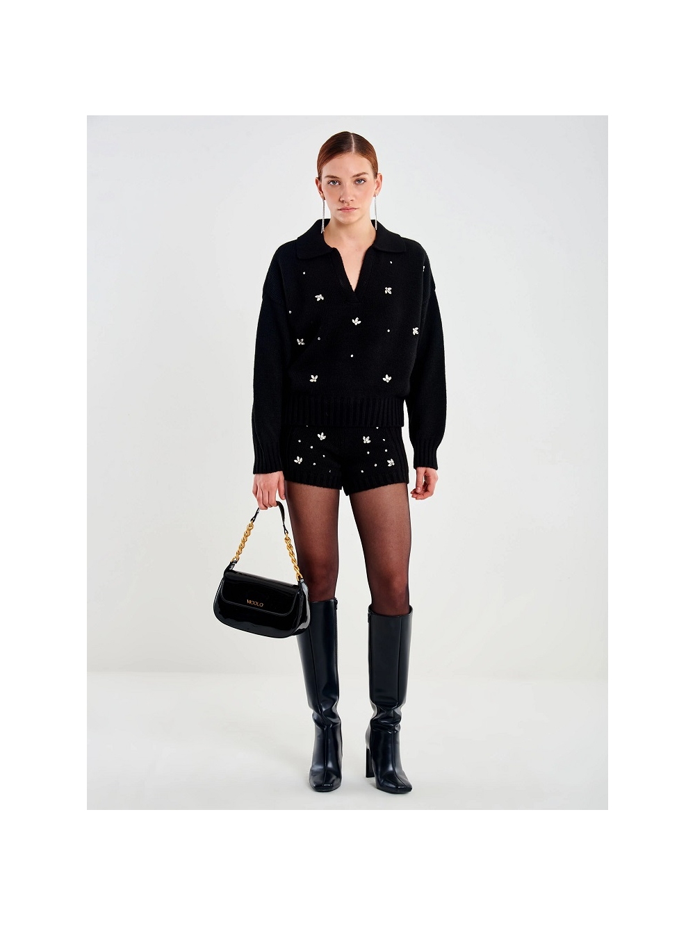 Shorts de punto con cabujones. Cintura elástica. Cabujones en la parte delantera. COMPOSICIÓN: