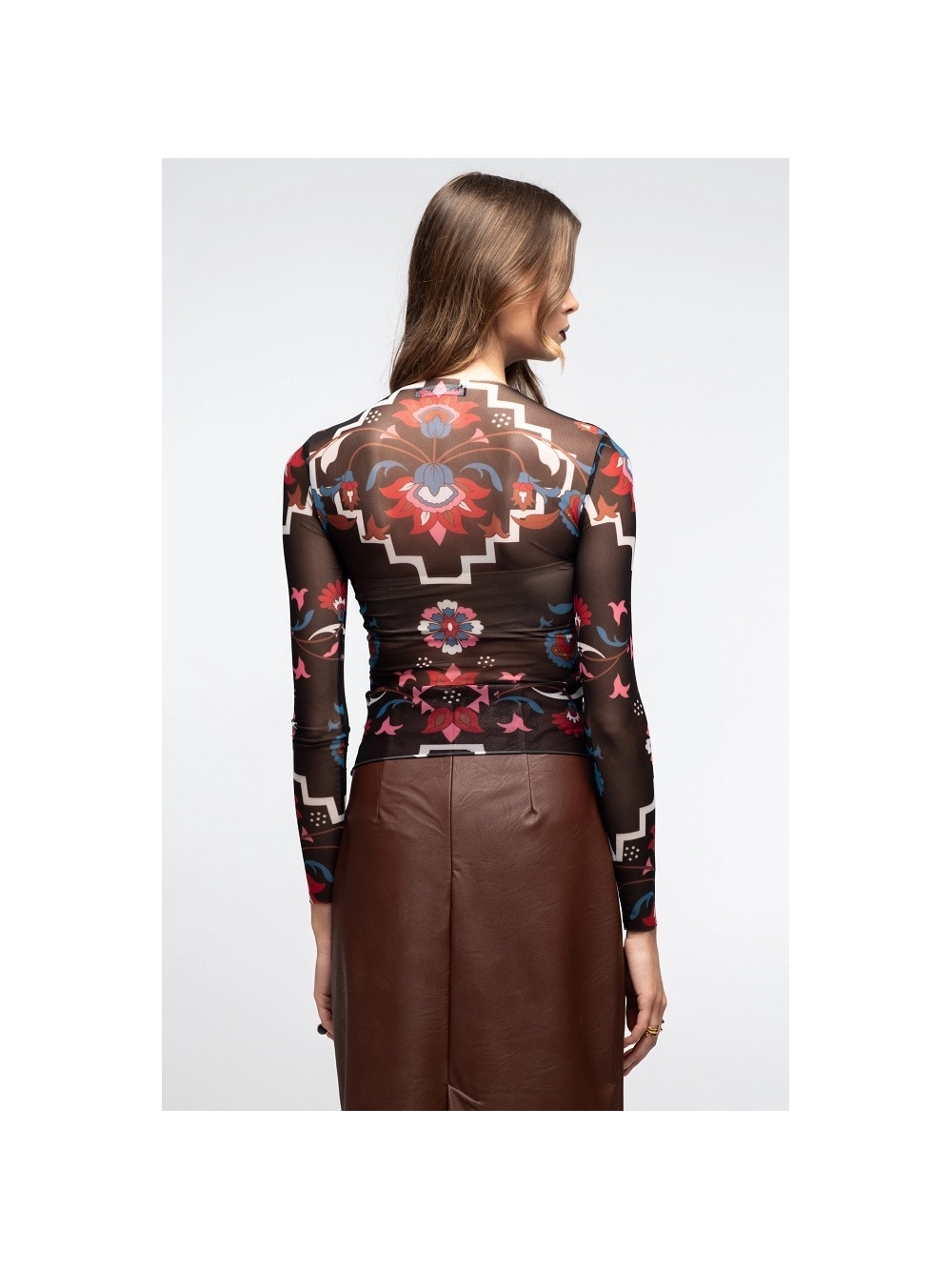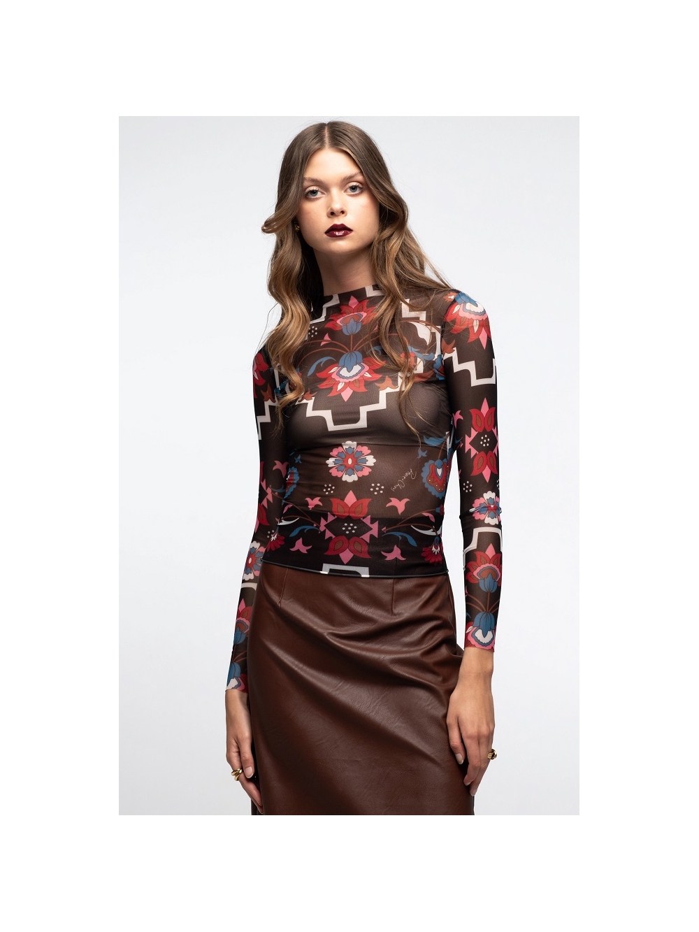 Top Romancer de malla tiene un corte con efecto tatuaje y un estampado floral fantástico. Este top transparente de manga larga está confeccionado en malla negra elástica y suave. Descubre el estampado excepcional de esta prenda, creado mediante la técnica de colocación. Cada parte de la prenda presenta un estampado único. Manga larga. Corte con efecto tatuaje. Estampado y diseño exclusivos de Peace Chaos. Diseñadores griegos COMPOSICIÓN: