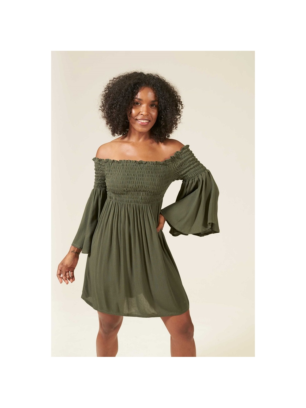 El vestido Grana es una opción imprescindible para lucir este verano, ya sea en cenas, fiestas en la playa o eventos elegantes como las fiestas de blanco. Con un bonito escote bardot, este vestido permite lucir los hombros con elegancia y estilo. Su parte superior presenta un fruncido con gomas tipo “nido de abeja” hasta la cintura, lo que realza la figura de manera natural y se adapta perfectamente a cualquier silueta gracias a su elasticidad.