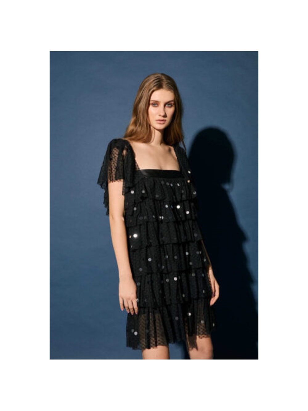 VESTIDO VOLANTES TOPOS PLATA