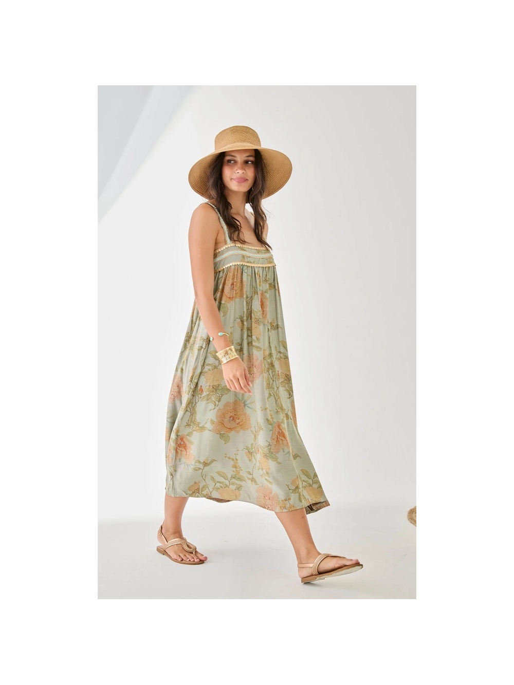 VESTIDO LARGO ESCOTE CUADRADO BORDADO
